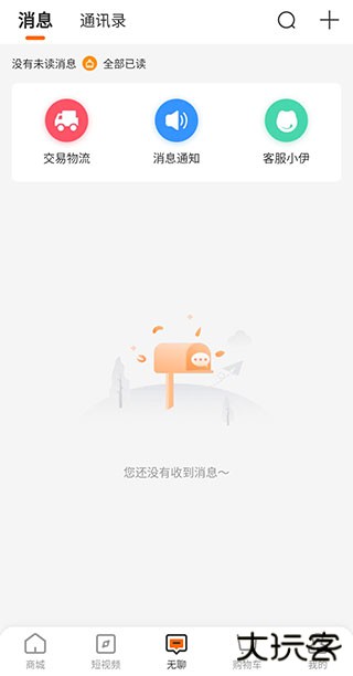 3、而在【无聊】页面,我们还能看到各种消息记录,其中就包括了对话消息、通知消息、交易物流、客服消息等。