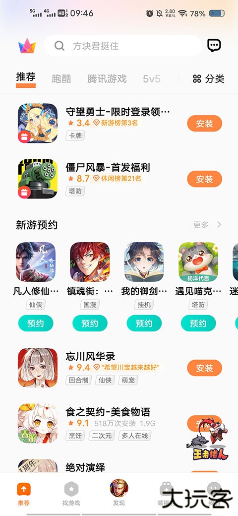 1、在游戏中心的首页,会有大量的新游推荐,以及在搜索框中输入自己想要玩的游戏。