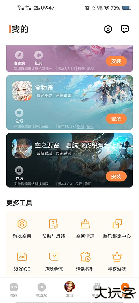 5、往下滑,在更多工具中,大家可以快速进入游戏空间。