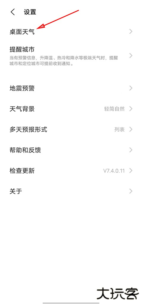 3、接下来在设置界面选择桌面天气;