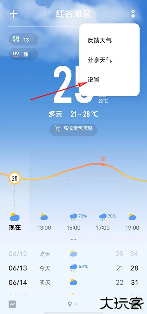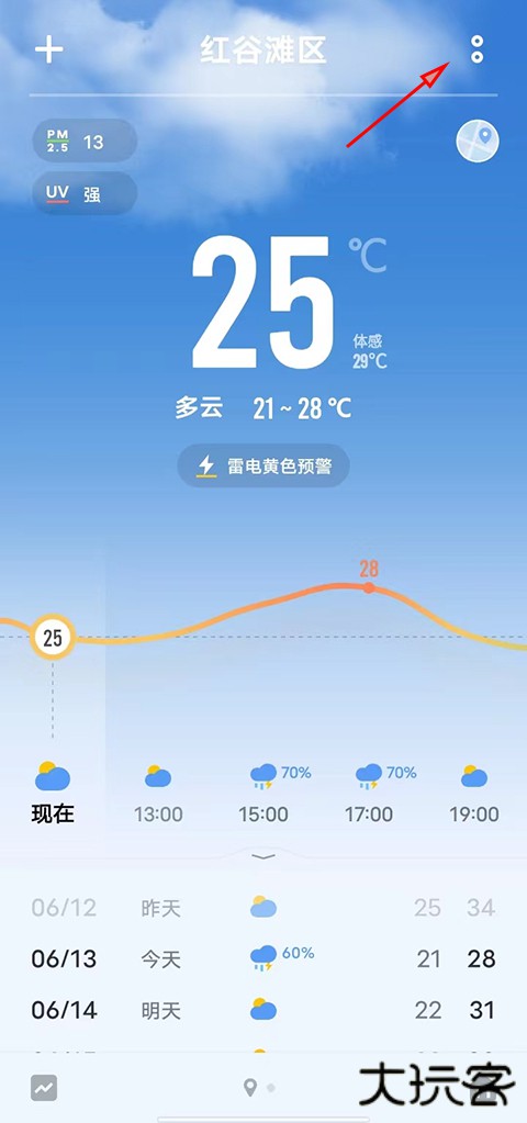 1、首先在本站下载完vivo天气app后打开进入点击右上角两个点;
