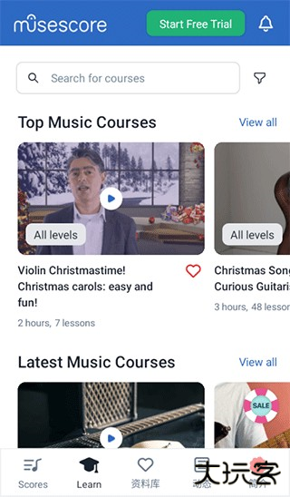 6、在学习界面,可以通过视频课程来学习相关乐器的知识