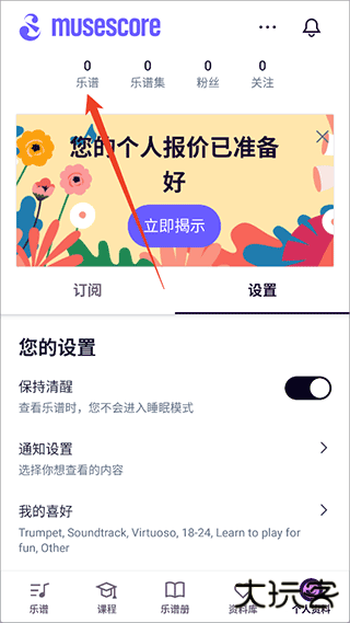 7、资料库界面用户可以查看收藏的乐谱,自己上传的乐谱等等