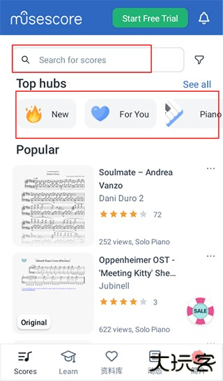 5、在乐谱界面,可以通过推荐或乐器类型来浏览相关乐谱,也能通过搜索直接找到乐谱