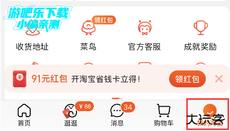 打开淘宝。首先打开手机淘宝,切换到“我的淘宝”界面。