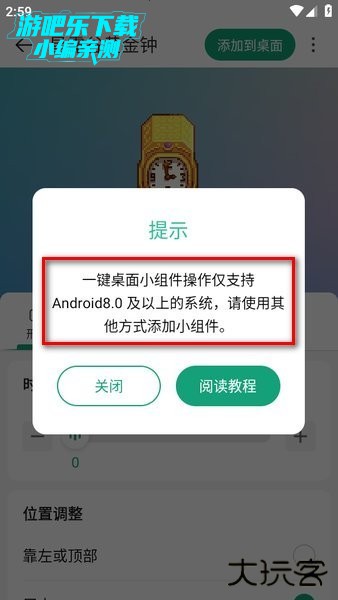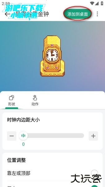 选择一个自己喜欢的小组件,比如星露谷黄金钟,点击右上角的“添加到桌面”;