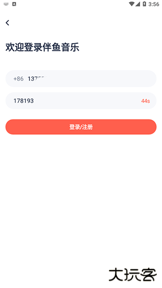 1、打开伴鱼音乐陪练软件输入自己的手机号码,点击获取验证码。