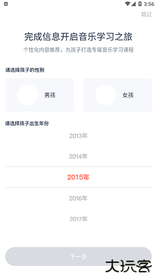 2、打开软件后设置好自己的性别和年龄点击下一步。