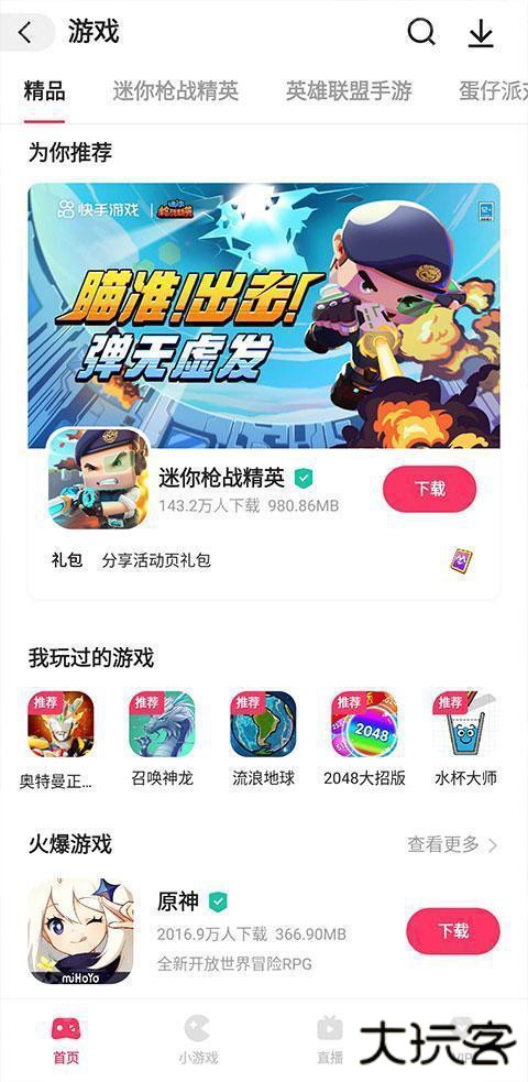 1、按照上方的方法进入快手小游戏,首页有最新的热门游戏,一般都是需要下载的,如下图。