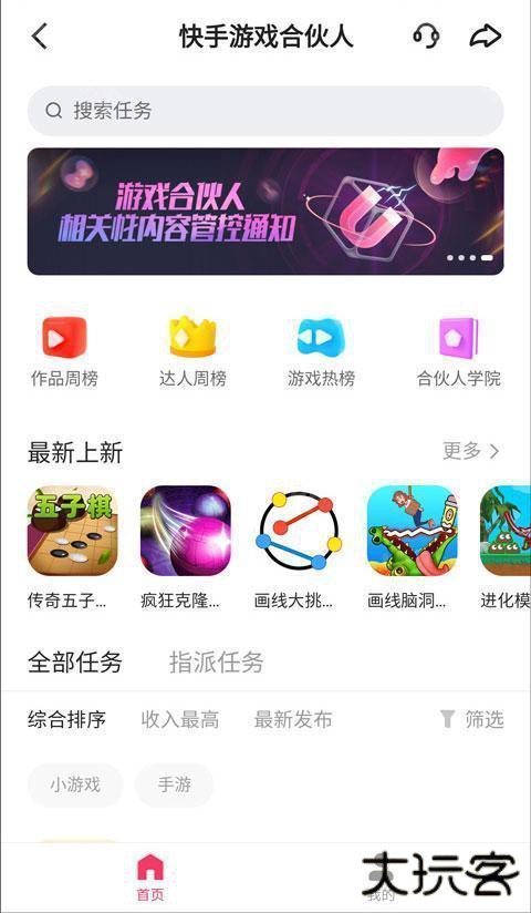 快手小游戏是快手平台推出的一个游戏聚合平台,我们通过制作视频,并在视频挂载小游戏链接,用户通过我们的视频进入小游戏,快手就会给我们一定的现金奖励。直接在快手搜索“快手游戏合伙人”就能进入到对应的活动页面,只需要简单授权,就能通过发布小游戏视频赚钱了。
