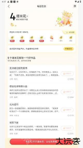 2、每日签到可以获得“爆米花”,这是盐言故事的特别道具,可以送给喜欢的作者,支持创造或者催促更新