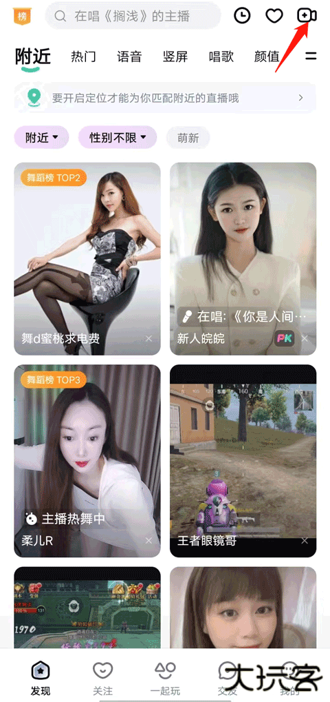1、进入该软件发现这个【页面】,点击右上角的直播视频图标。