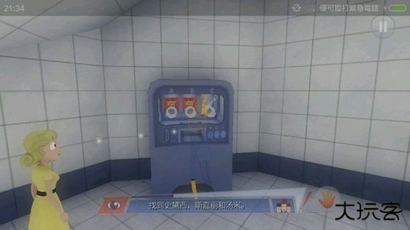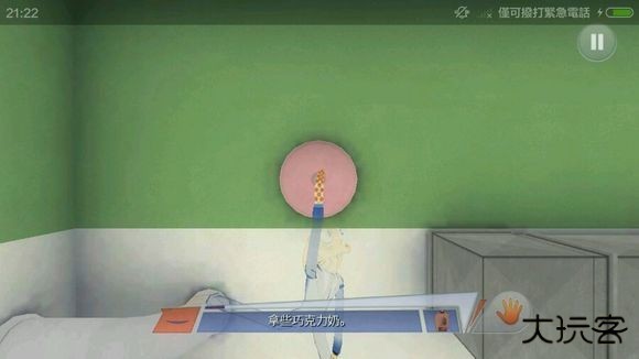 3、拿上垫子清空后桌子出现的钥匙,用钥匙打开橱柜,两根手指划动抬起手臂,钥匙对准孔之后再次点击就可以开启,要打开两个孔;