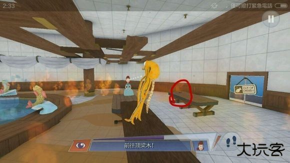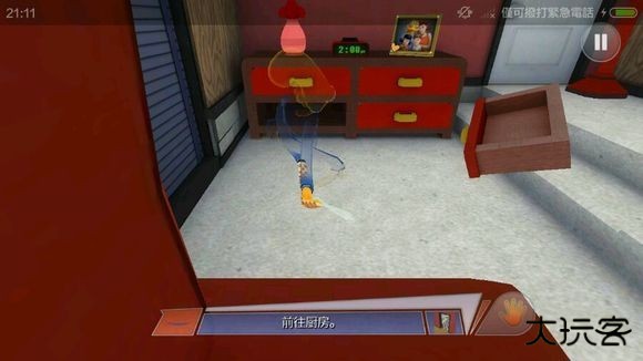 4、离开房间,点击右下角的标志把手切换为脚就可操控走路;