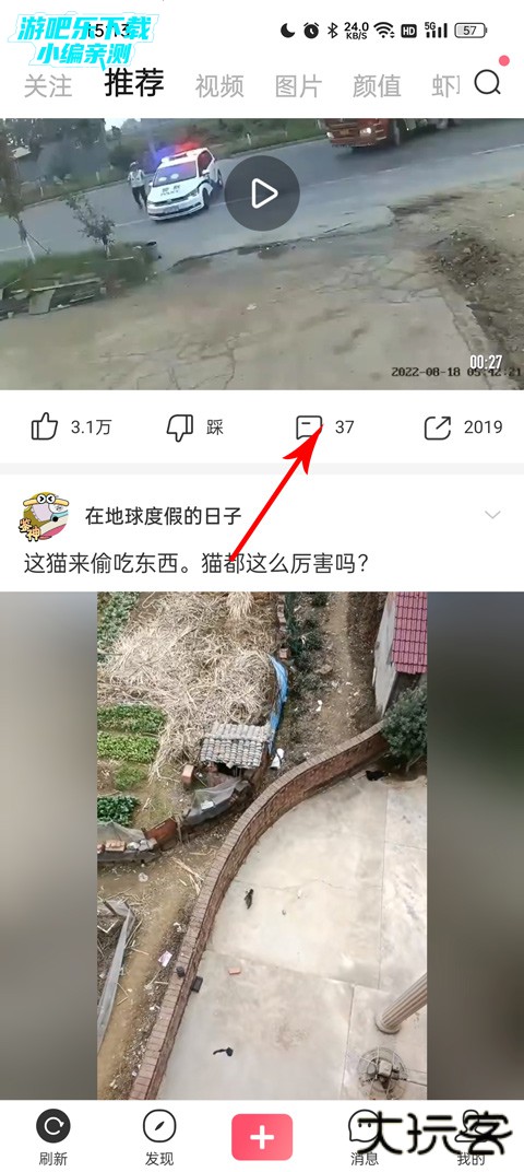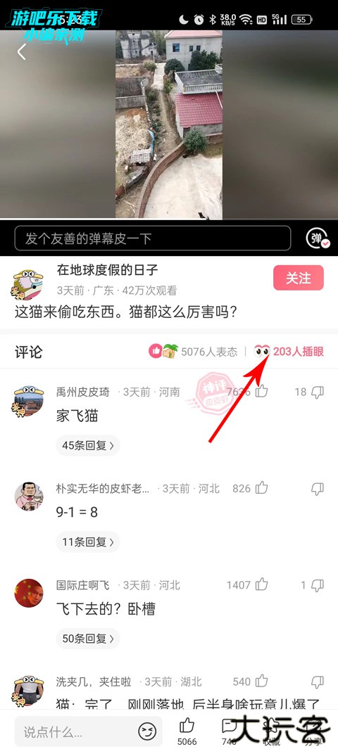 2、找到你想插眼的视频,点击评论进入评论页面;