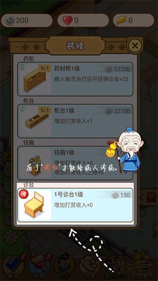 1、玩家还可以用诊断赚来的钱购买更多更好的医疗设备,用更好的设施和更好的药材治疗患者