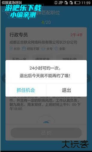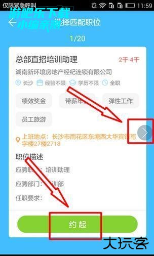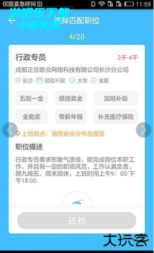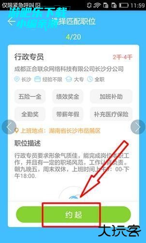 3、小伙伴可以左右滑动选择自己心水的职位,选好之后就直接“约起”