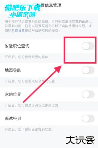 将“附近职位查询”后面的功能键打开即可