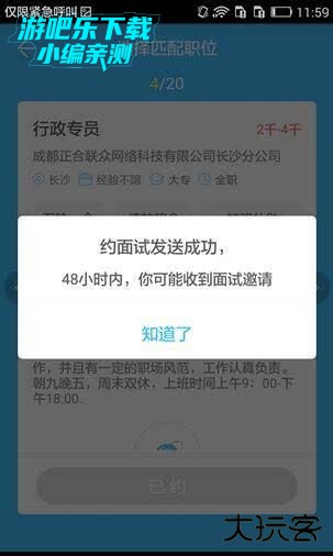 4、约面试发送成功,小伙伴将会在48小时内收到面试邀请啦