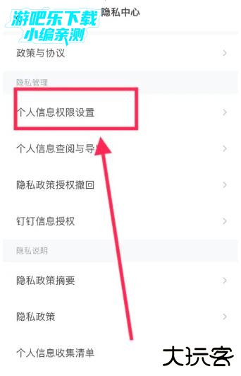 点击“个人信息权限设置”