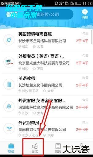 1、打开最新版本智联招聘app首页,点击“面试”页面