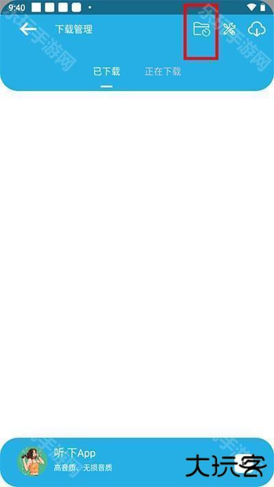 3、进入下载管理页面后点击右上角的第一个文件夹路径按钮。