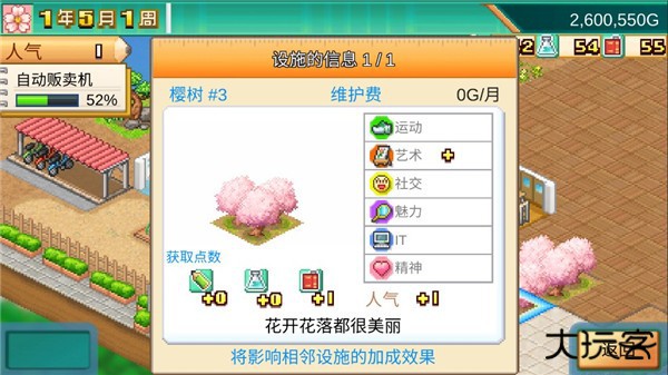 2、游戏中要注意对于每个设施的了解,还要注意正确的去升级那些设施来获得更多的加成,这样的话学生和教师在使用这些设施的时候也会哟这更多的能力加成,这一点很关键。