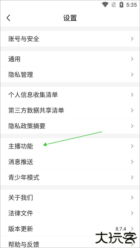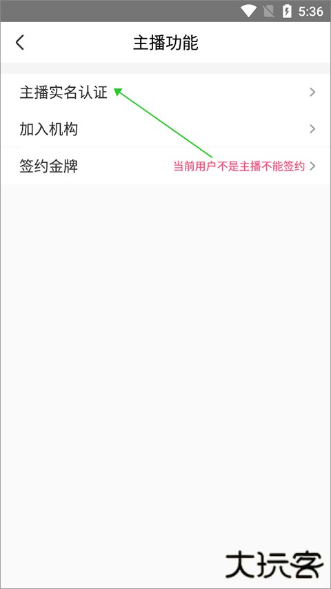 在我的页面中点击右上角的设置图标,进入设置页面中点击【主播功能】,在打开的新页面中点击【主播实名认证】,进行主播认证注册。认证通过后可以进行签约。