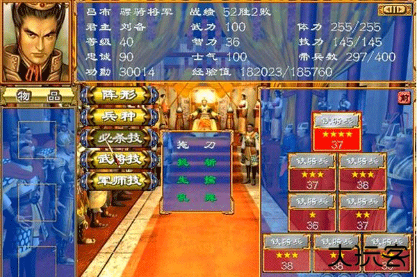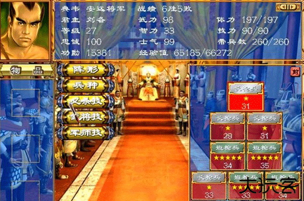 让玩家的带兵量加倍,达到400人上限,而每位将军在游戏里可率领三种不同类型的士兵搭配,加上不同的阵形产生许多不一样的战术变化,如可在前方布置武斗兵做肉搏战,后方则置放长距离攻击的弓箭兵等..