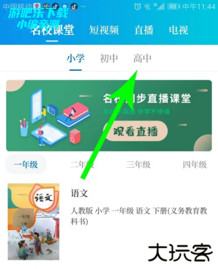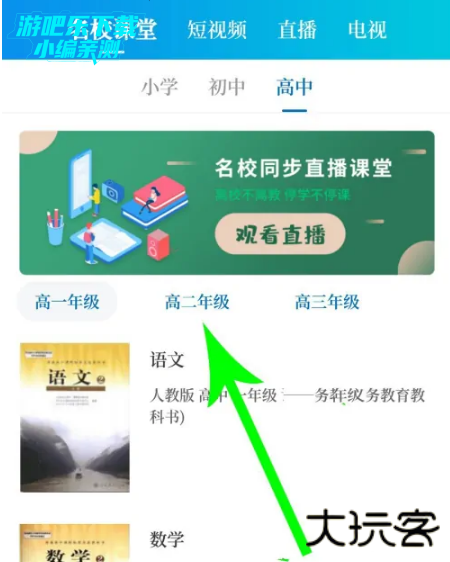 打开名校课堂界面点击“高中”,然后点击“高二年级”。