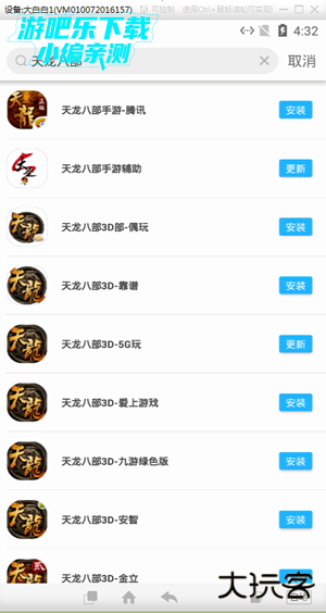 2、找到《天龙八部》应用,选择自己玩的客户端版本一键下载安装。