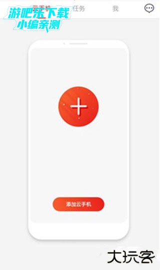 1、登录之后,点击主界面上大大的+号,添加云手机设备。