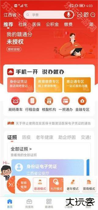赣服通是一款结合大数据云计算以及区域链技术的服务软件,主要面向本地广大人民群众提供便捷的政务服务,其中创建了个人专属空间和企业专属空间,在个人专属空间中设置了我的办件,我的评分以及我的证照多种不同的栏目,还设置了丰富的数字空间用来管理自己的各种电子证照。