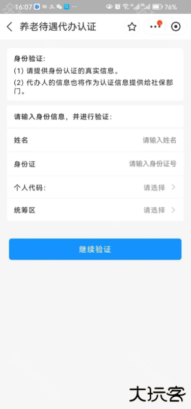 3、输入领取待遇对象基本信息,点击“继续认证”,根据屏幕文字提示完脸采集,提示认证成功即可;