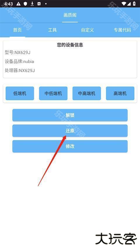 1、在画质阁首页处点击还原功能