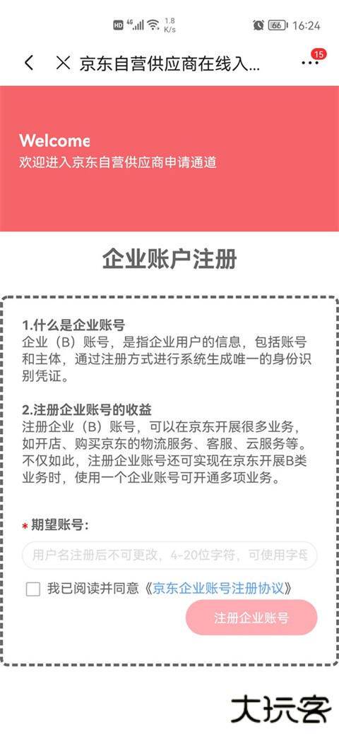 注册并登录京东账号,根据要求填写信息,并上传相关资质