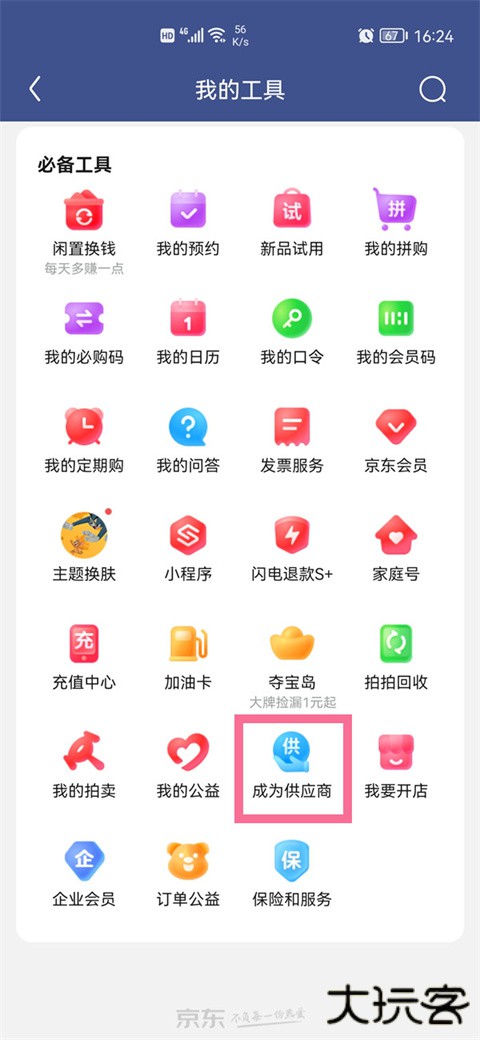 1、进入软件,在“我的”页面点击【更多工具】,找到【成为供应商】。
