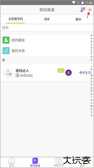 3、密码族谱:新增按主性格、流年排序,更好玩,更有趣。