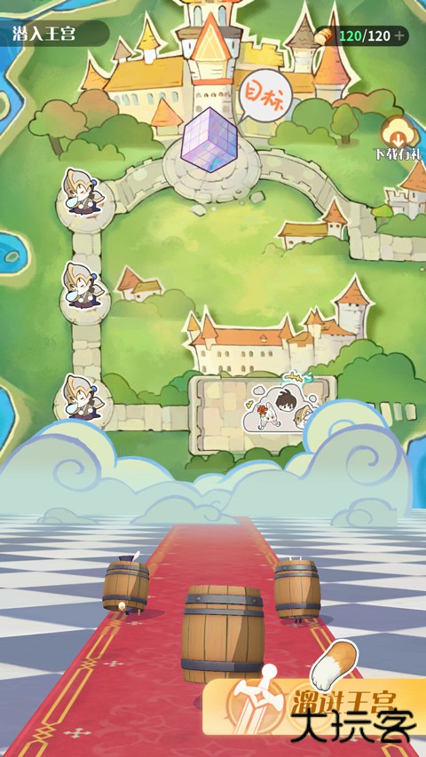 3、进入游戏如图,点击右下角遛进王宫;