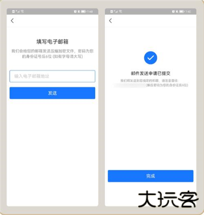 3、输入你的邮箱,支付宝会把账单文件打包成压缩包,然后以邮件形式发到你的邮箱,这里和微信不同的是,解压密码是你的身份证后6位。