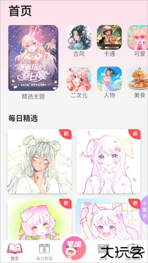 1、打开绘涂壁纸App后,首页的每日精选板块每天推送个性化壁纸
