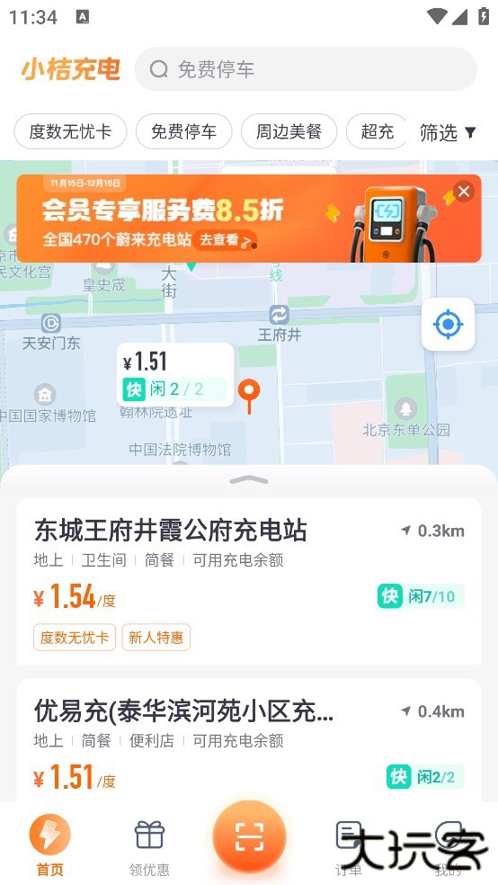 3、查找附近充电桩:在应用首页,点击“附近充电桩”按钮,系统将自动定位并显示附近的充电桩。