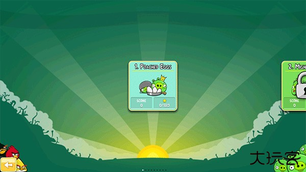 3.每个关卡使用的鸟儿越少,评价将会越高,可使用羽毛提升小鸟等级,提高小鸟得分能力。