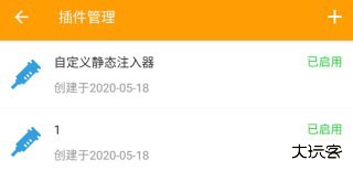 6、修改完成后,点击右上角的√保存即可。保存后,在设置中的插件管理 ,即可看到刚刚创建的静态注入插件,点击启用即可。