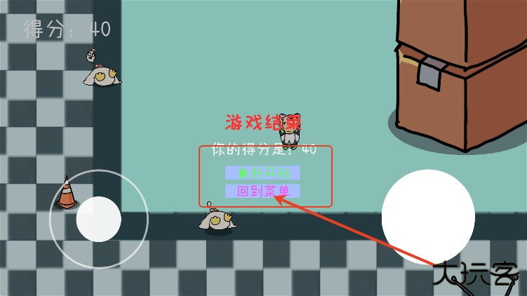 游戏结束,可以点击重新开始游戏,或者直接返回菜单