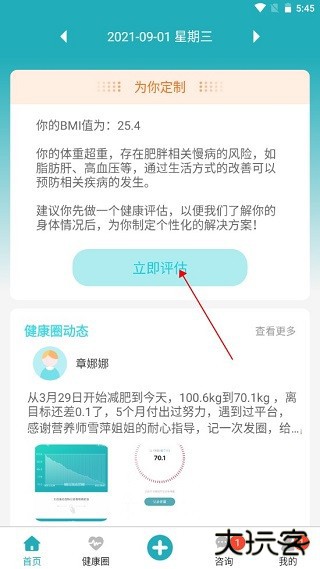 1、健康圈:浏览其他用户发送的减肥动态,您可以进行评论和点赞