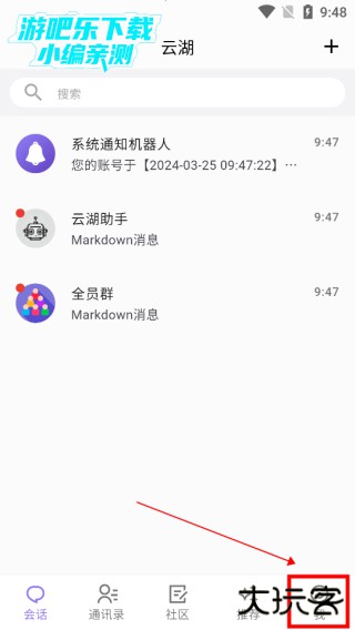 1、进入云湖app首页,找到“我”板块;