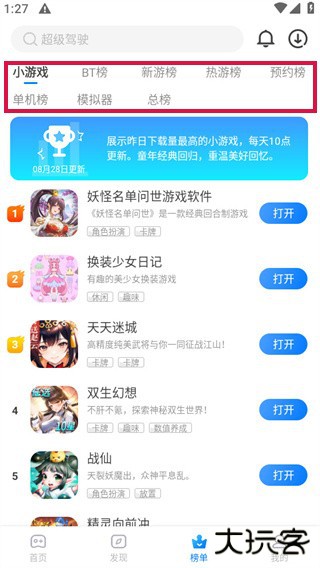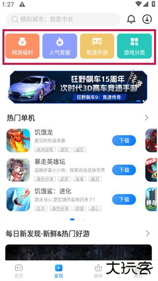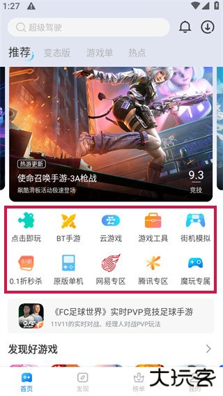 2、发现专区让用户可以看见各种热门的游戏分类。