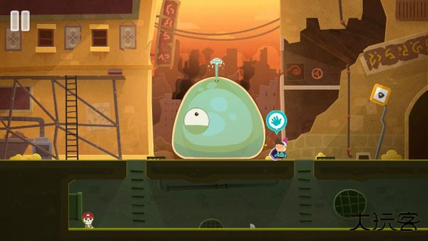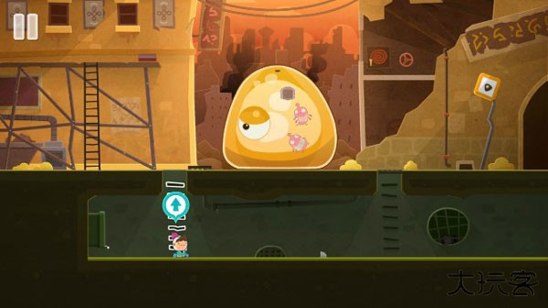 8、然后玩家需要爬到史莱姆身上,并转动消防管道的阀门来冲击史莱姆的身体。