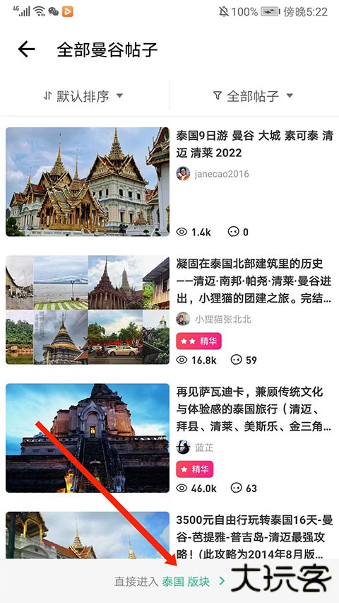 3、进入到全部曼谷帖子界面,然后选择下方“进入泰国板块”,